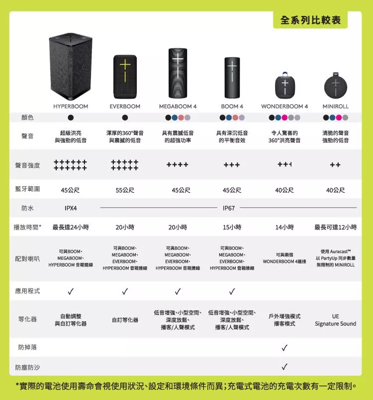 6,990 Ultimate Ears – EVERBOOM 可攜式藍牙喇叭 4,490 Ultimate Ears – BOOM 4 360度防水藍牙喇叭四代 1,890 UE Ultimate Ears – MINIROLL 攜帶式藍牙喇叭