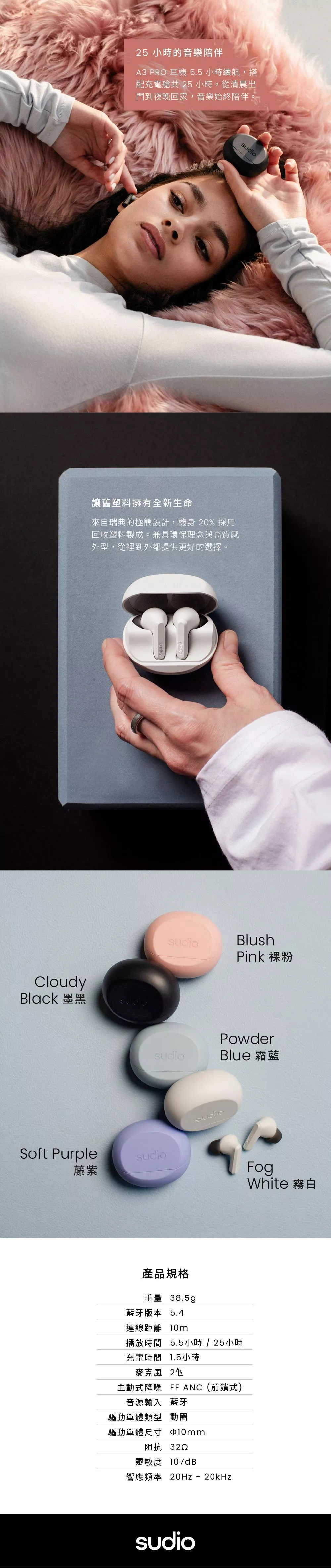 1,580 Sudio R3 耳罩式藍牙耳機 1,264 Sudio N3 真無線藍牙耳機【多色可選】 1,280 Sudio T3 真無線藍牙耳機 1,904 Sudio N3 Pro 主動降噪真無線藍牙耳機