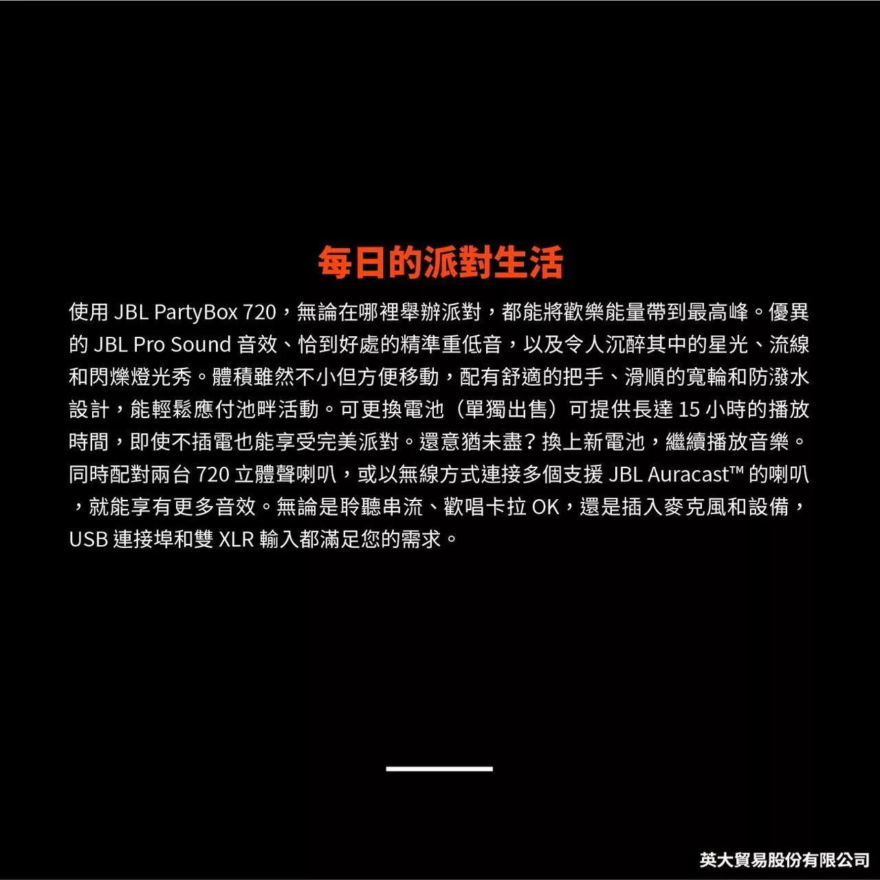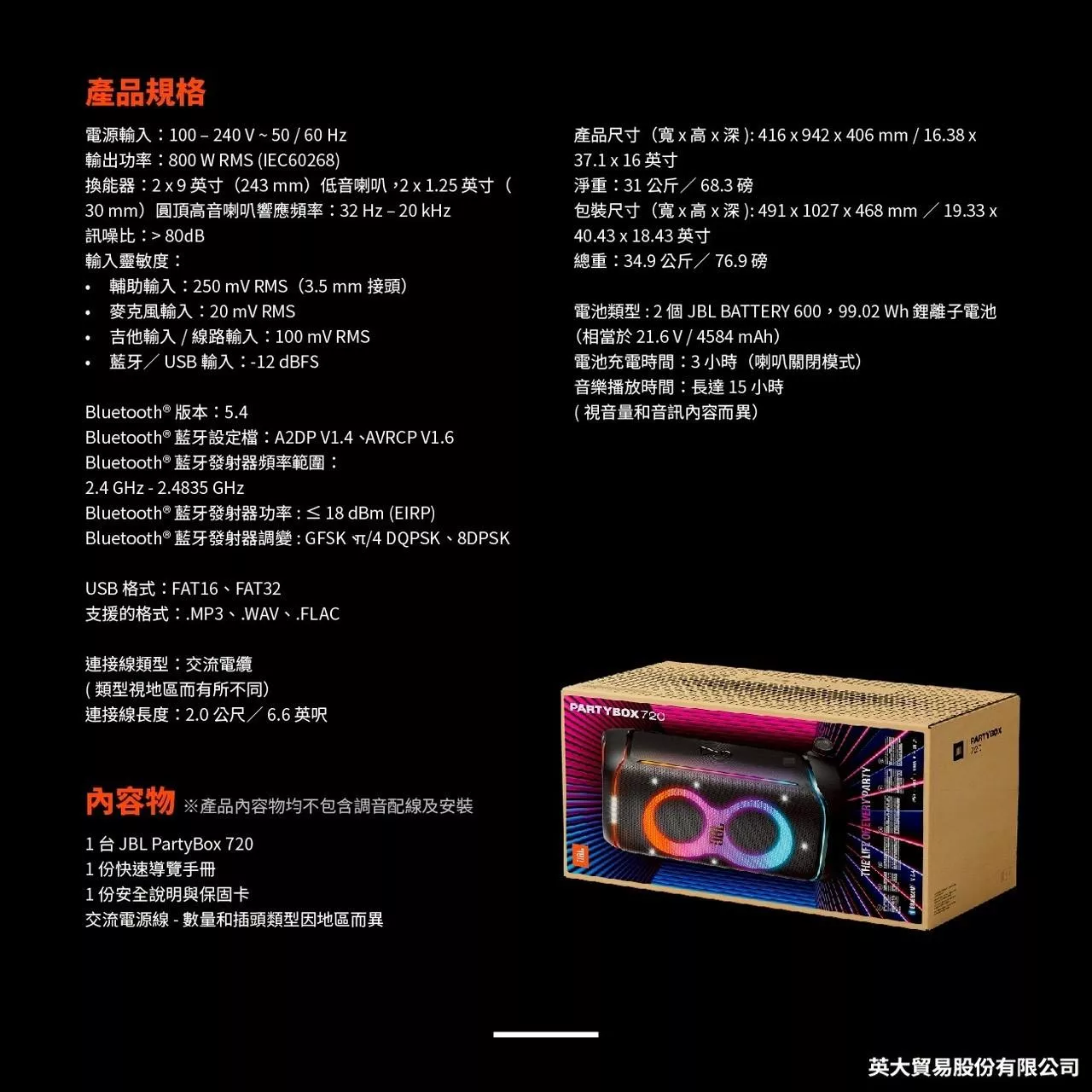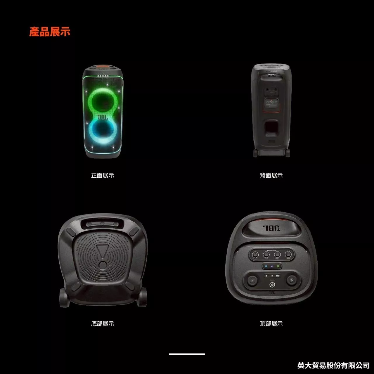 9,888 【JBL】 Partybox Encore Essential 便攜式派對藍牙喇叭 6,980 JBL Charge6 可攜式防水藍牙喇叭 12,800 JBL Xtreme 4 可攜式防水藍牙喇叭 58,800 JBL Partybox Ultimate 終極燈光派對藍牙喇叭(送JBL Wireless Microphone 無線麥克風)