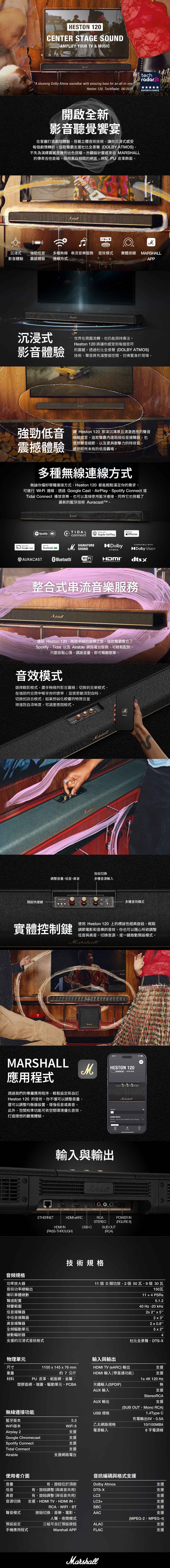 | 有線輸入 | HDMI eARC、HDMI 輸入、RCA 立體聲、RCA 單聲道(低音輸出)、USB-C 乙太網 |