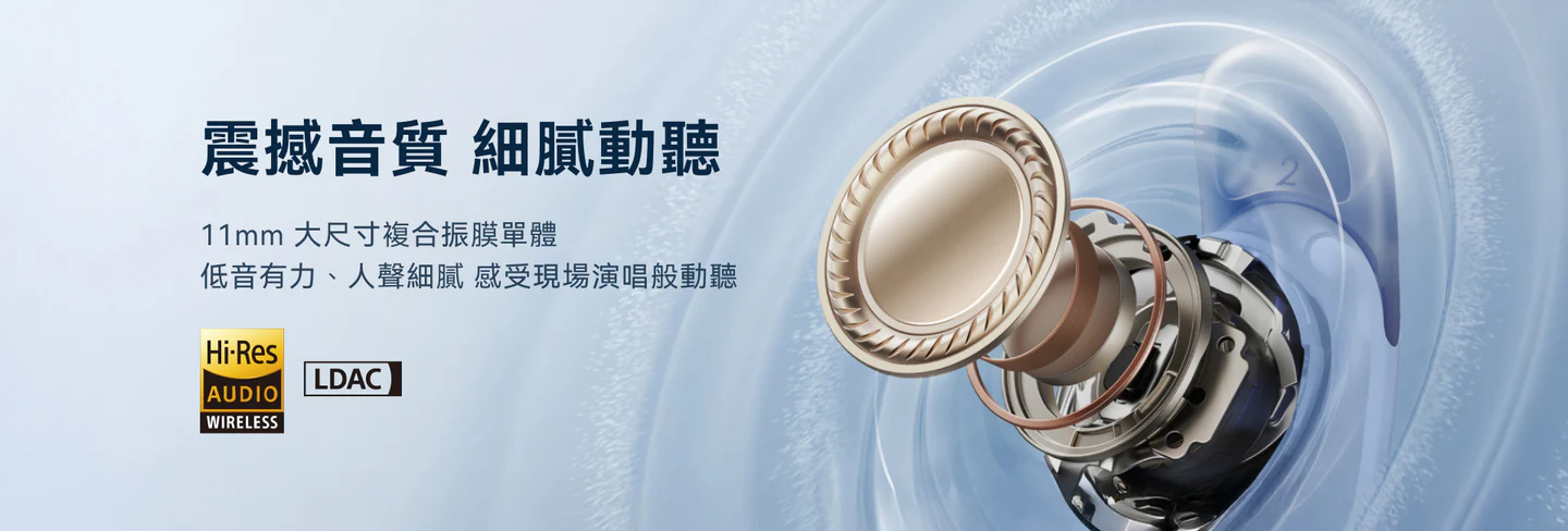 11mm 大尺寸複合振膜單體,低音有力、人聲細膩,感受現場演唱般動聽