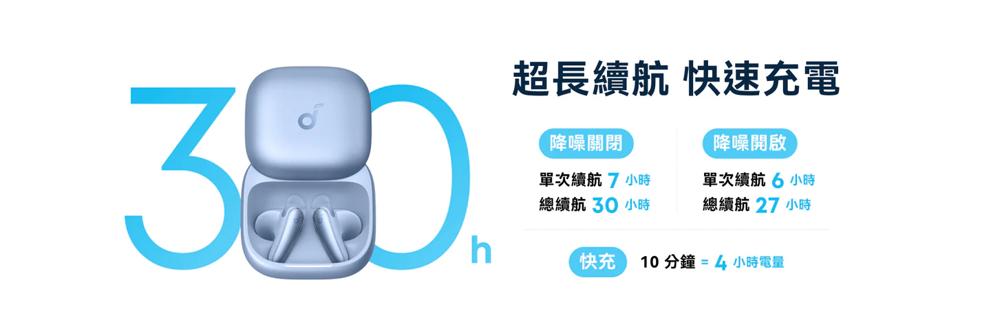 總續航 30 小時,快充 10 分鐘就能聽 4 小時,在外整天不怕沒電