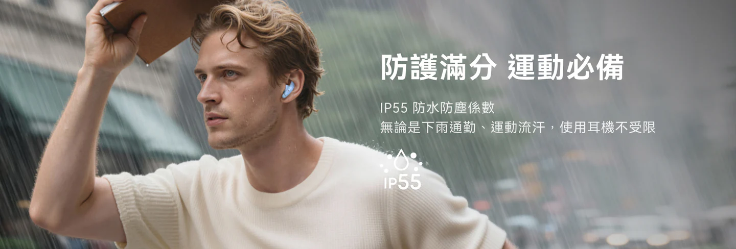 支援 IP55 防塵防水,雨水、汗水潑濺都能安心防護